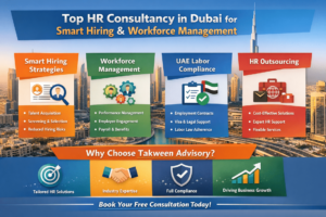 Don’t let HR management challenges slow down your business growth. Partner with Takween Advisory and take the first step toward building a productive, compliant, and high-performing workforce. Our expert team provides professional hr consultancy services in Dubai designed to simplify recruitment, streamline workforce management, and ensure full compliance with UAE regulations.